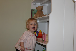 I went to pick Ava up early from school one day last week and peeked in her classroom to see all of the children sitting at the table having their afternoon snack. All of the children were being so good eating their snack and as they finished they got up from the table, threw away their napkin, put their juice cup on the counter, and then stood in line for the teacher to wash their hands. It was the most amazing thing I have every seen in my life and I commented to the teacher that Ava had been putting her juice cup up on our counter at home and now I see where she learned this from. I am so pleased with Ava's daycare and you can tell that Ava learns a lot of songs at school because she is always singing and dancing around the house. You cannot make out most of what she is saying but she does say more, milk, cat, peek boo, and oh oh. She loves to mimic anything that we do down to fake sneezing after her Mimi sneezed. Her walk sometimes has a little skip to it and she is now running around the house. She still loves her story time and could stay in the bath tub for hours if we let her. She gives kisses when she wants to and has the best laugh. She continues to be a joy in our life and we always look forward to what she does and learns each day.